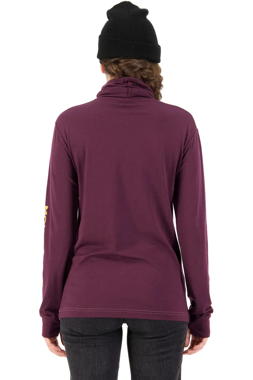 Yotei BF High Neck is a long-sleeved merino wool shirt with a more relaxed fit and a high collar. Works well when layered as an undershirt as well as on its own for everyday use.