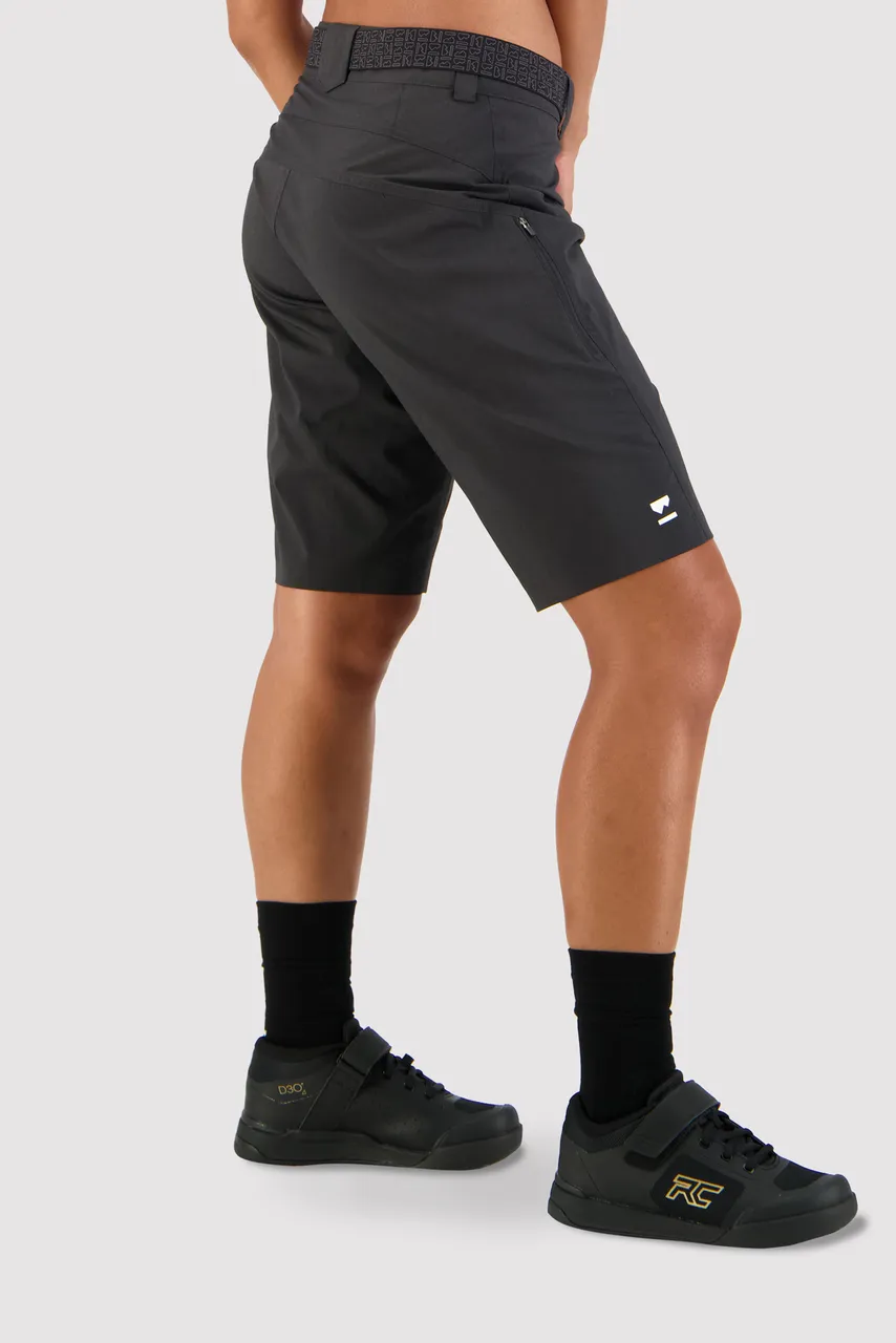 Virage Bike Shortsit ovat kevyet mutta kestävät shortsit maastopolkujen rippaajille. Vetoketjullinen tasku pitää puhelimen messissä ja mätsäävä vyö pitää kaiken muun. Housujen materiaali koostuu kierrätyspullojen kestävästä polyesterista, merinovillan suorituskyvystä sekä elastaanin liikkuvuudesta.