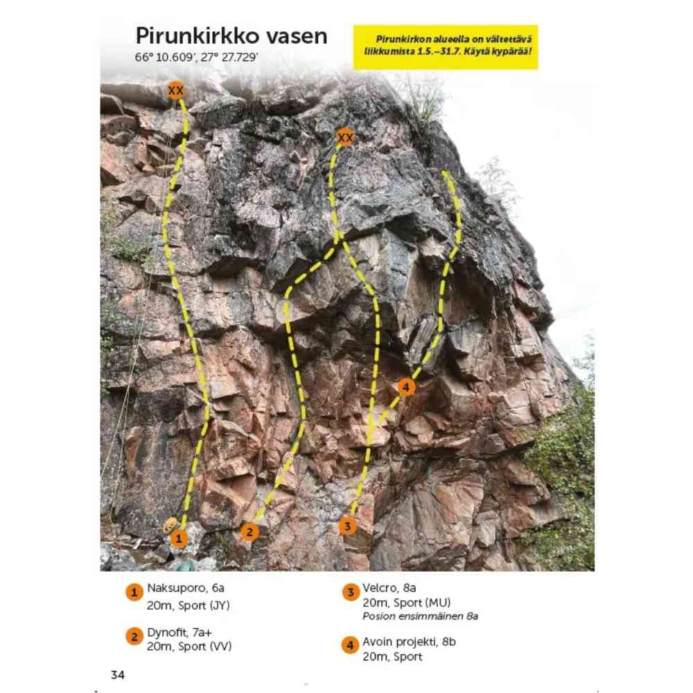 "Koko Suomen" kalliokiipeilyreitit samoissa kansissa. Nykyinen pain...